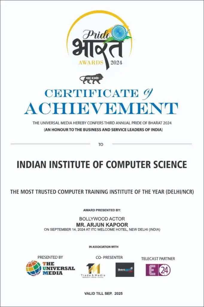 IICS Computer Education has been honored with the prestigious Bharat Pride Award 2024! This award is a testament to our unwavering commitment to excellence in computer education and skill development.